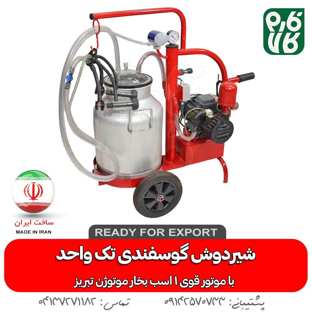 شیردوش تک واحد گوسفندی یعنی دستگاهی که در آن واحد توانایی شیردوشیدن از تنها یک راس گوسفند را داراست. اگر میخواهید که در زمان کوتاهتری گوسفندهای بیشتری را شیردوشی کنید، بهتر هست با شیردوش گوسفندی دو واحد برقی کار را شروع کنید. ساختار این دو شیردوش یکی است فقط تفاوت آنها در قطعات بالایی برای مکش شیر گوسفند هست.